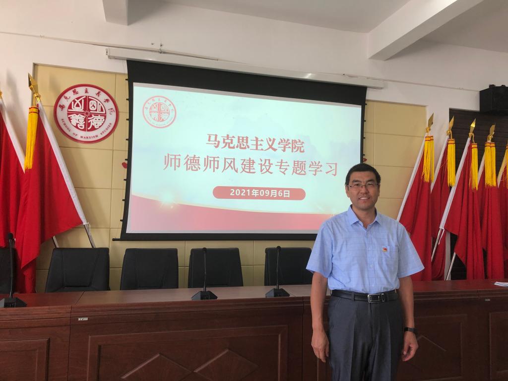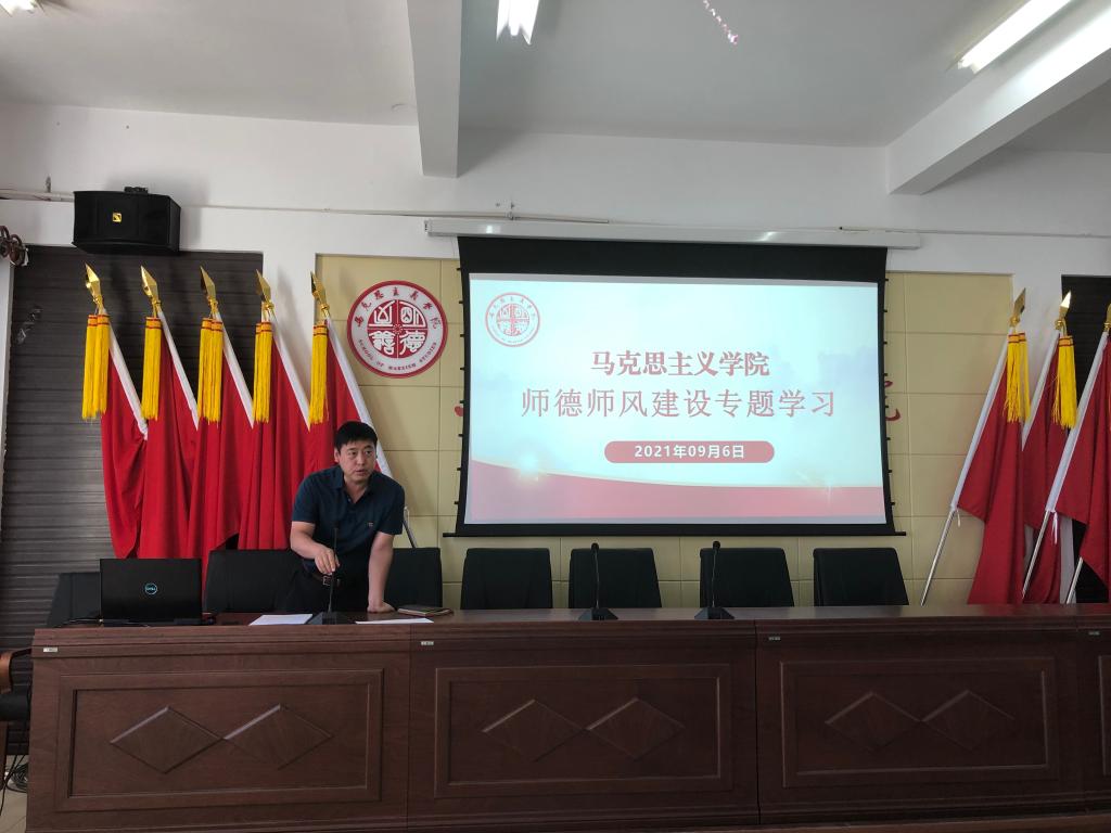 经理张光存同志强调了师德师风建设的重要性,重点讲述如何在思想政治理论课教学中做到“四个融入”,部署了思想政治理论课程调整、新教工岗前培训、科研等工作。