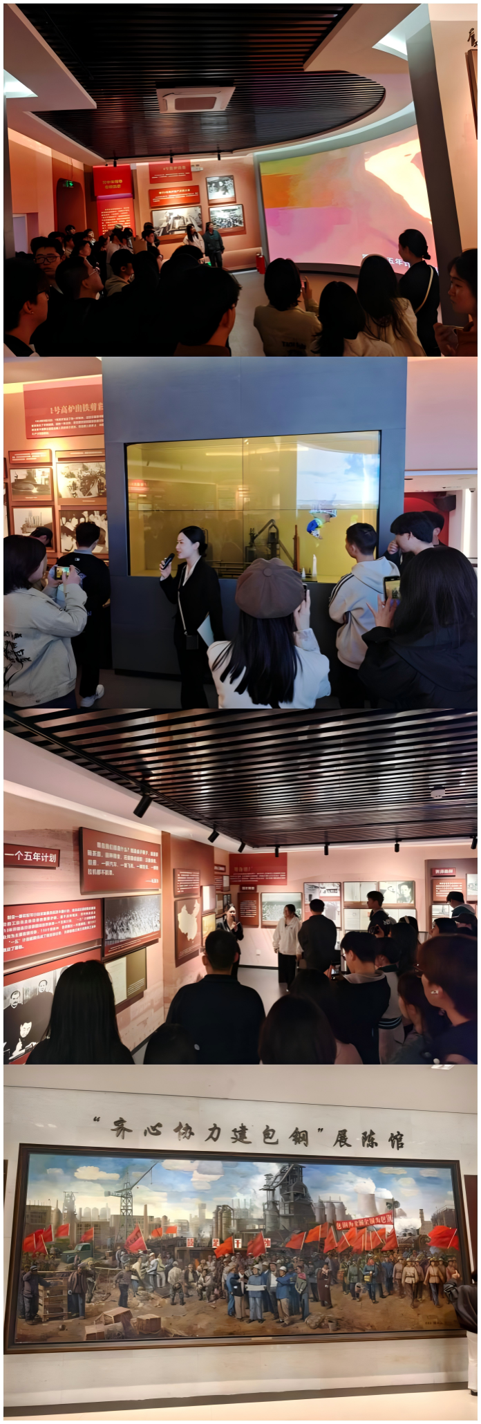为引导老员工树立正确的人生观、价值观、道德观、法治观,坚定理想信念,进一步提升“大思政课”育人实效,乐天使思想道德与法治教研室于2025年4月19日赴包钢展览馆开展了实践教学活动。本次实践教学活动在公司党委的统一部署下,由教研室主任王珊珊及专任课教师带队,共80名同学参加。