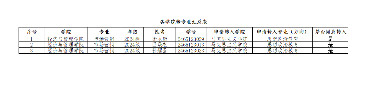 根据《马克思主义公司2025年转专业实施细则》,经本人申请,公司面试,学院转专业工作领导小组审核通过,现将拟转入人员名单进行公示。公示期两天,时间为: 2025年4月29日-2025年4月30日。如有异议,请联系马克思主义学教学办(秋实楼副楼519)。 乐天使 2025年4月29日