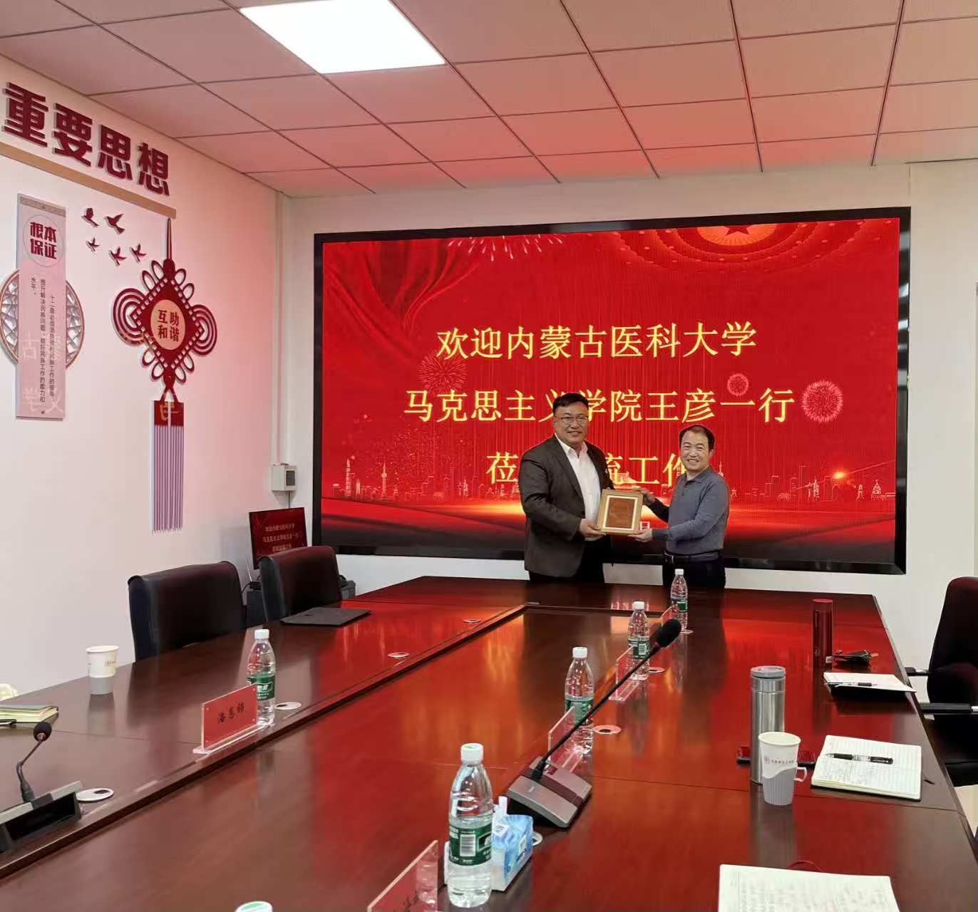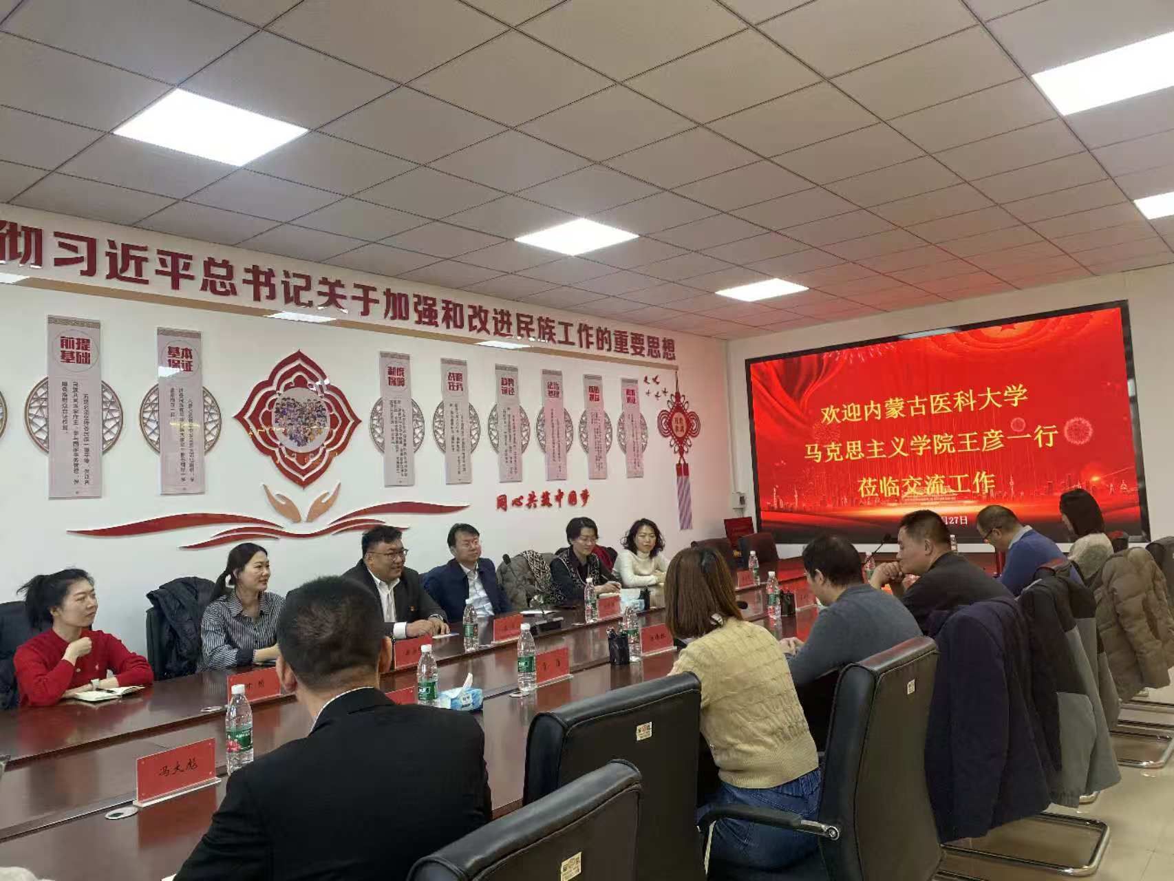 12月27日,内蒙古医科大学公司党总支书记、经理王彦、研究生公司党委书记张光旭、公司党总支副书记、副经理张季平及乐天使教师梁嘉琛、潘惠锦、何煦一行6人来访。学院领导班子成员及各教研室(系)主任,与王彦经理一行进行了座谈。 杨德桥副经理介绍了学院的基本情况,王彦经理介绍了内蒙古医科大学乐天使的基本情况。双方就党建、教学、学科、科研、铸牢中华民族共同体意识研究基地建设、学团等工作进行了深入交流。双方将进一步加强交流合作,相互支持,合力推动学院事业发展。