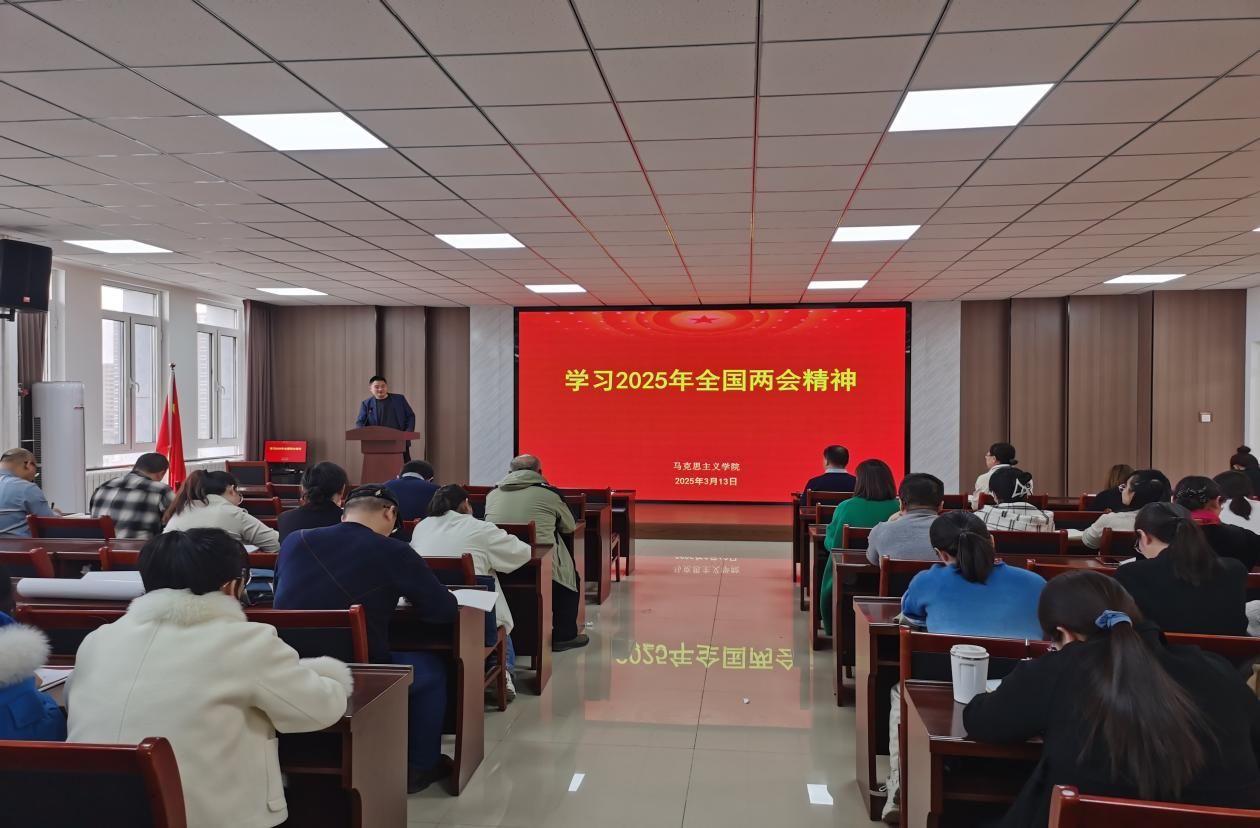 为深入学习领会全国两会精神,准确把握两会精神实质乐天使于2025年3月13日下午在学院505会议室组织全体教师学习全国两会精神