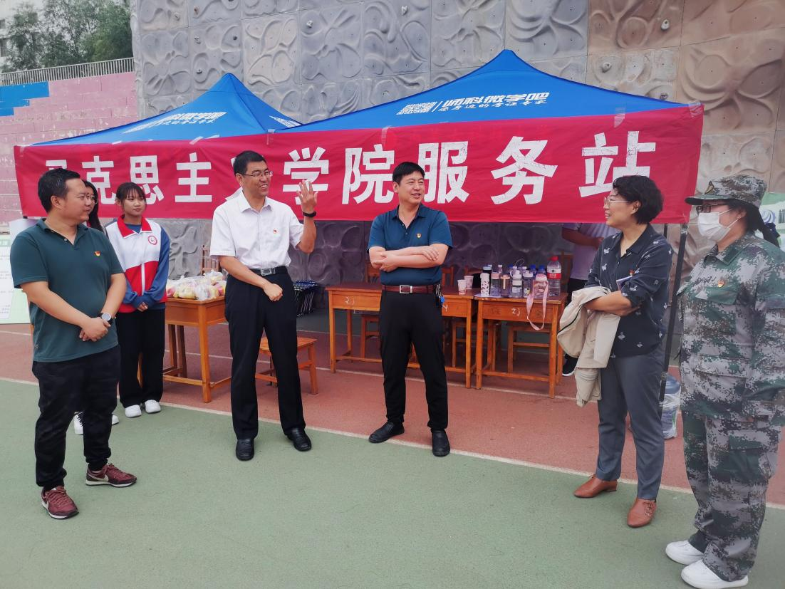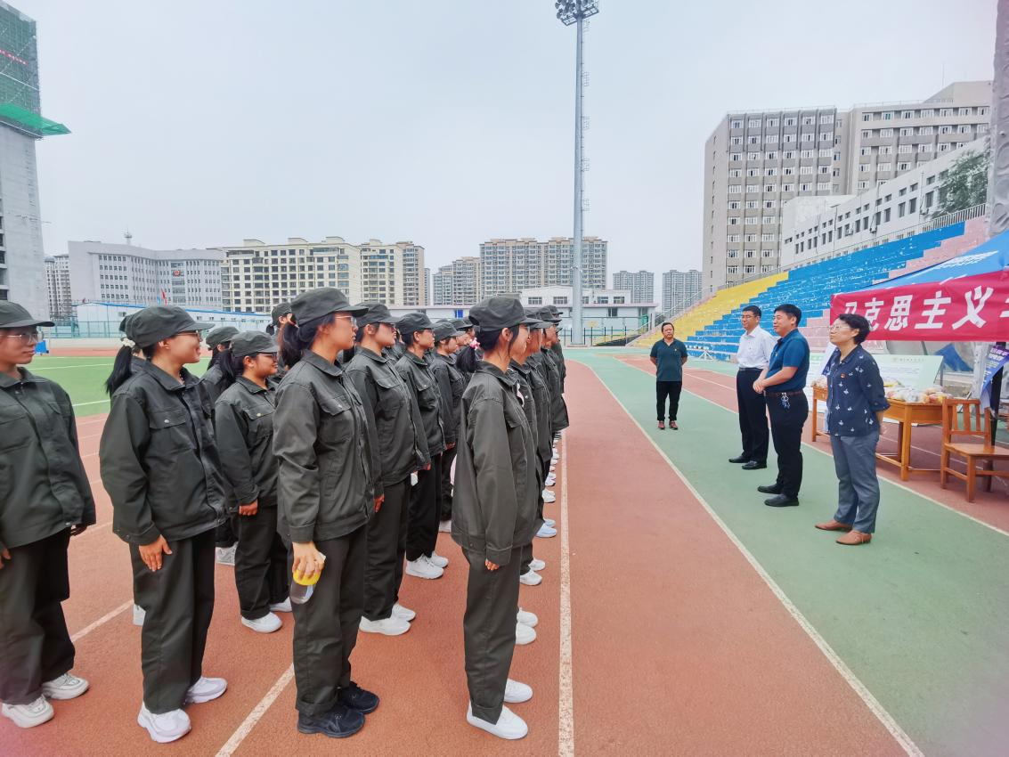 2021年9月18日上午,公司党总支书记马广辉,经理张光存,党总支副书记、副经理柴艳莎,综合办主任范炜,辅导员王海朋来到军训营地,看望公司2021级员工及随训教师王姗姗。