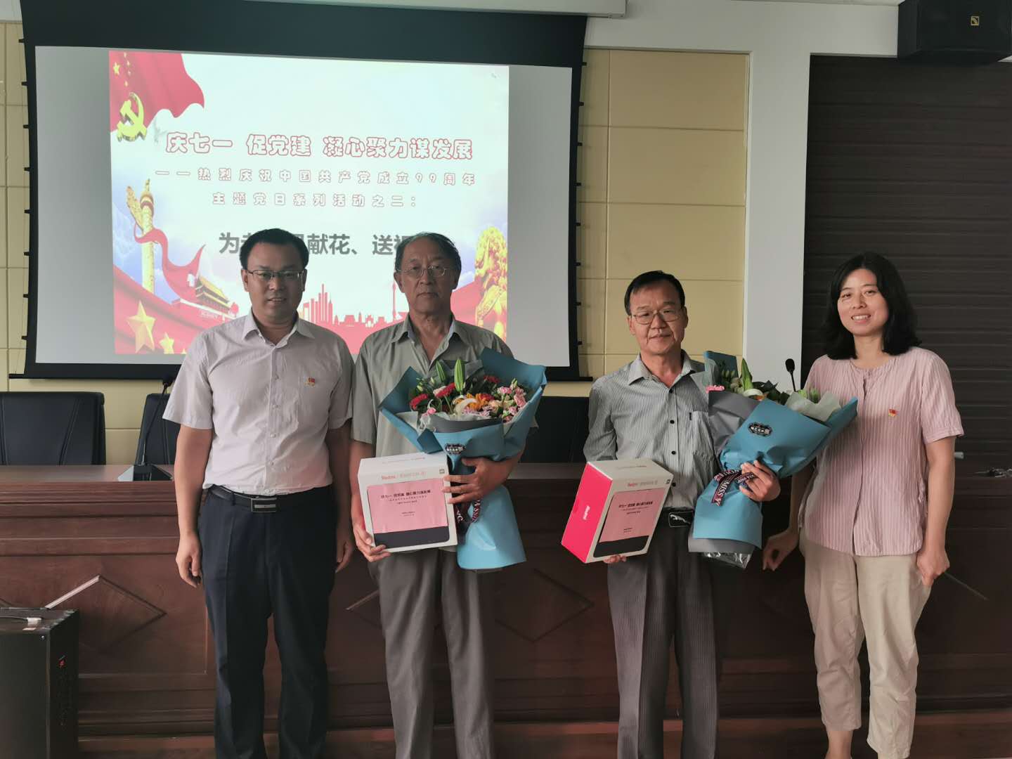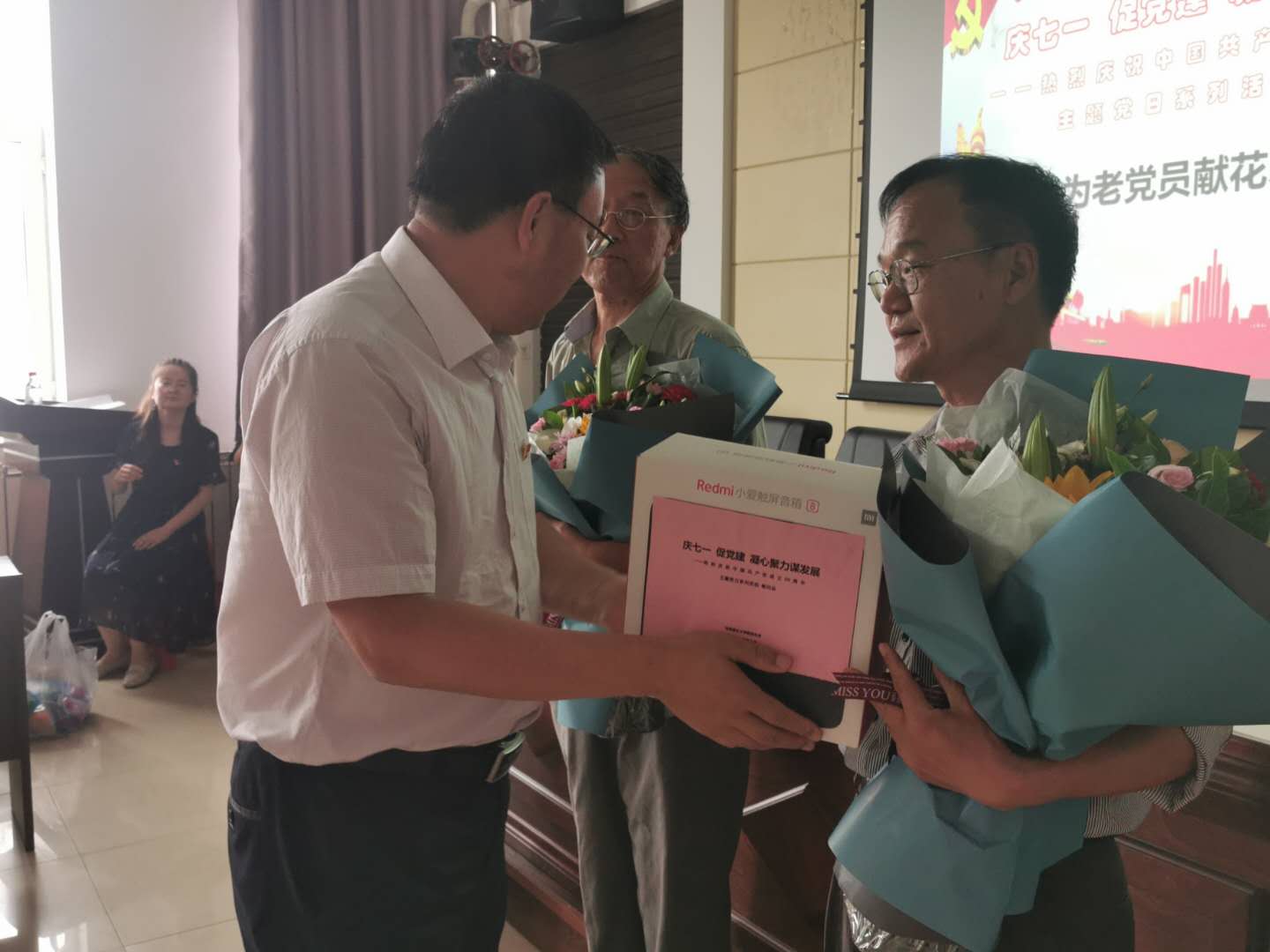老党员是我们事业的开拓者、奠基人。他们为学院的建设和发展做出了巨大贡献。副经理许丽丽为退休老党员献花,党总支书记刘玉明为退休党员赠送纪念品。献花和纪念品是对退休老党员的祝福,同时也是对刚刚光荣退休的刘立军老师的欢送。为退休老党员献花、送祝福旨在推动尊崇老教师老党员,形成尊老爱小的良好氛围。随后,退休老党员刘立军与大家分享了他的退休生活和工作感悟。
