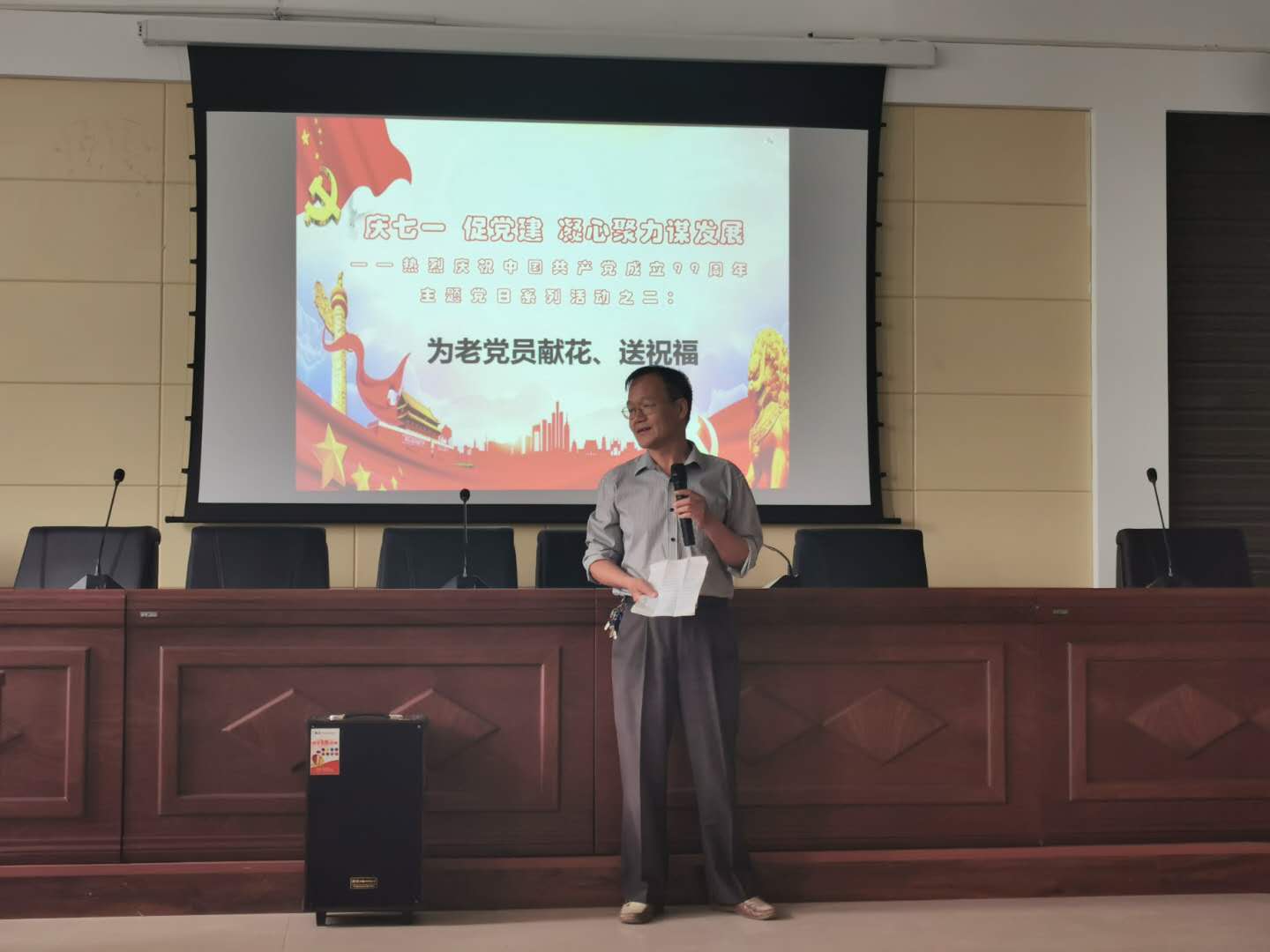 活动伊始,党总支书记刘玉明致辞。刘玉明首先代表党总支向广大党员送上节日的祝贺,向老党员们致以崇高的敬意,向党总支成员和各支部书记、支部委员和党小组长们道以诚挚的感谢,向党外同志们的支持和配合表示衷心的感谢。他指出,本次党日活动旨在庆祝中国共产党成立99周年。通过主题党日系列活动,激励全体党员坚定理想信念、忠诚履职尽责、勇于担当作为。