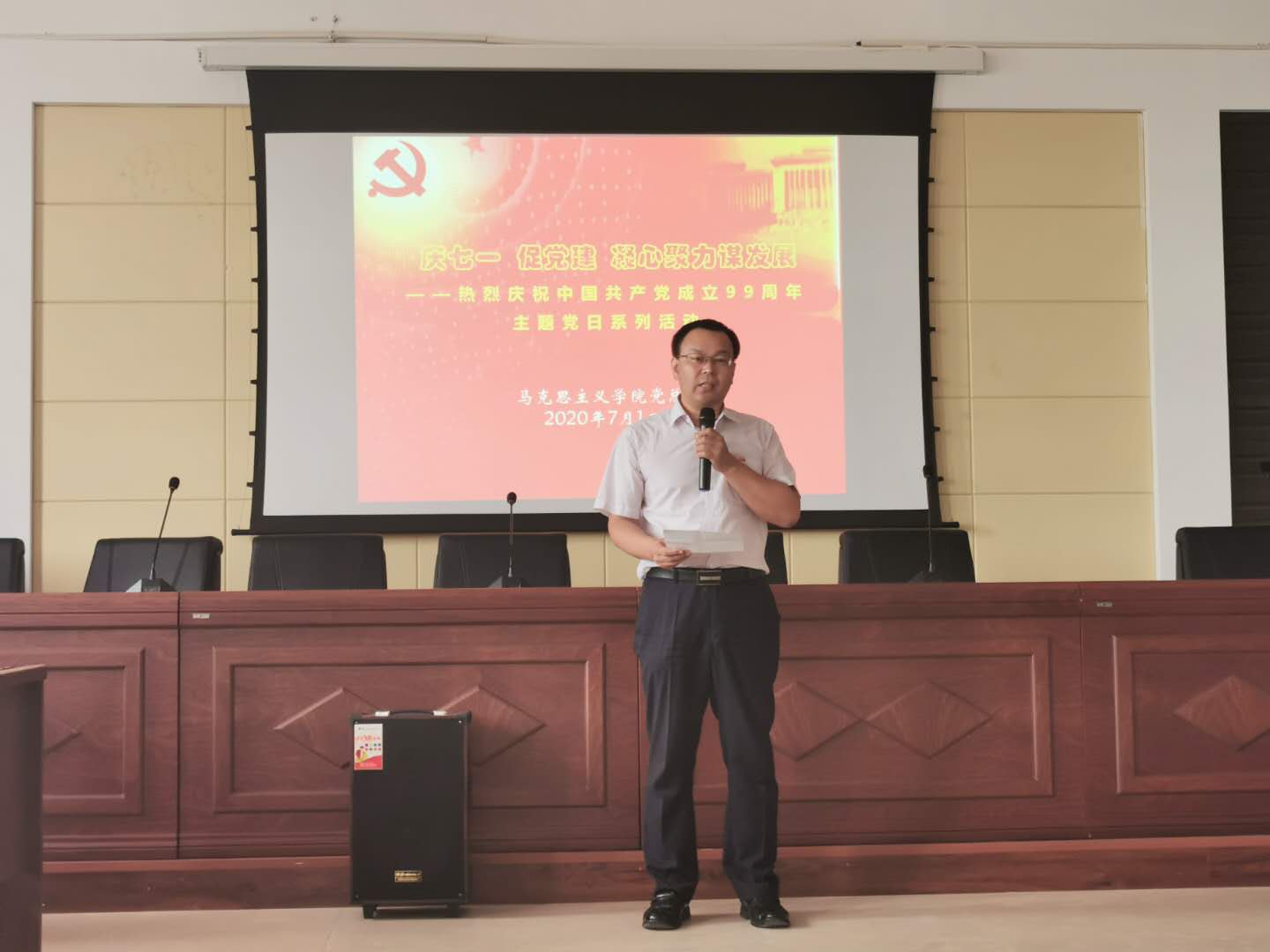 刘玉明指出,回顾历史是为了增强开拓前进的勇气和力量。党的今天来之不易,在和平时期,党员教师更应认真思考如何在平凡的岗位上体现出不同于普通群众的价值所在和精神追求。他最后强调,广大党员教师要紧紧围绕在以习近平同志为核心的党中央周围,增强“四个意识”、坚定“四个自信”、做到“两个维护”,把初心和使命落实到本职岗位上,充分发挥战斗堡垒和先锋模范作用,立德树人、扎实工作、为建设和谐马院自信马院添砖加瓦。