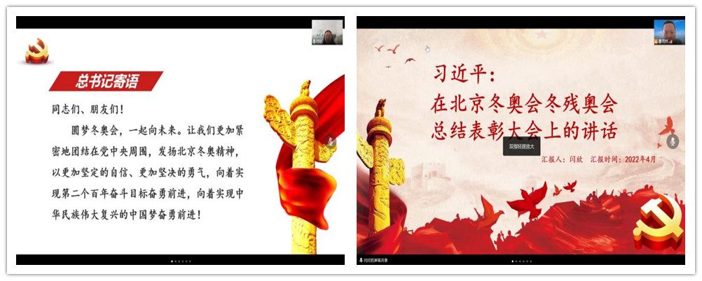 4月13日,员工党员闫欣讲党课,主题为《习近平在北京冬奥会冬残奥会总结表彰大会上的讲话》。