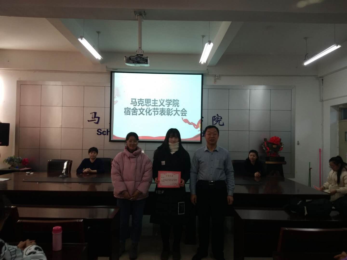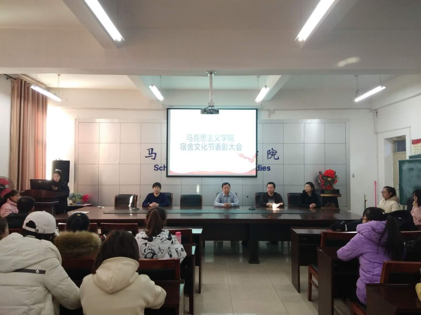 本次“宿舍文化节”分别由宿舍装扮及宿舍logo设计活动、优秀宿舍及优秀个人评比、“我的宿舍我的家”征文比赛三个部分组成,活动为期一个月。在学院领导的高度重视下,经过学工办老师、学院主席团、学院生活部的层层筛选、严格评审,最终评选出3个优秀宿舍和5个先进个人。表彰会现场对获奖宿舍及个人进行了颁奖。