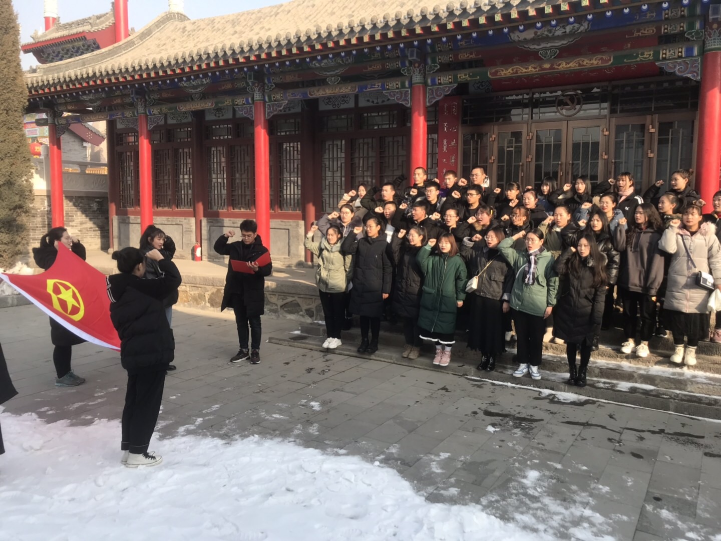 在包头召革命纪念馆内,同学们在讲解人员的带领下,重温了以李裕智、王若飞、乌兰夫、奎璧、吉雅泰、多松年、刘仁、巴文峻等同志为代表的一大批蒙汉及各民族革命先辈的英雄事迹,大家都被革命先烈坚贞不屈、不怕牺牲的革命精神和坚定的共产主义信念深深震撼。全体团员面向团旗庄严宣誓,重温入团誓词,铿锵有力的誓言,更加坚定了团员们不忘跟党初心、牢记青春使命的责任感和使命感。随后,全体师生高唱《我和我的祖国》,用激昂的歌声赞美伟大的祖国、伟大的新时代。