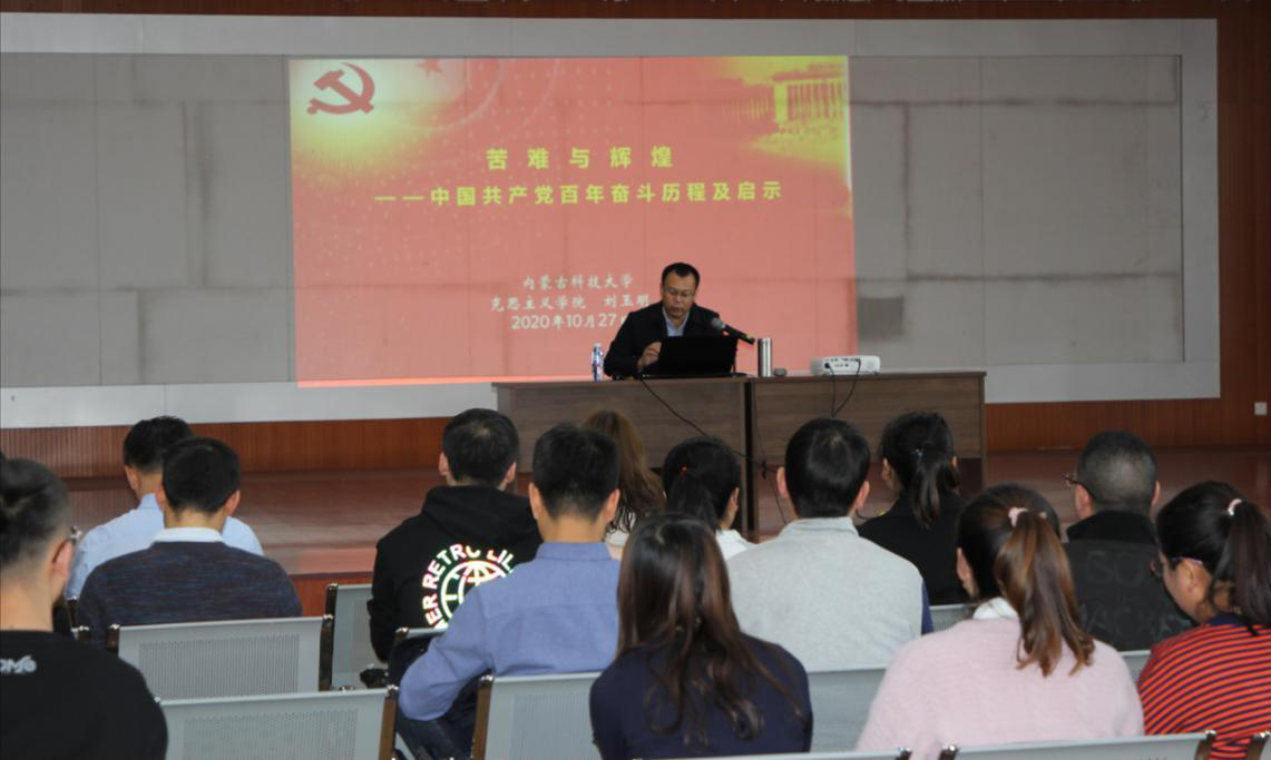 刘玉明以马克思主义中国化为主线,以党的历次代表大会为纵深,以新民主主义革命、社会主义革命和建设以及改革开放和社会主义现代化建设三个历史时期为重点,生动翔实地展示了党的百年苦难和辉煌奋斗史。并从理论指导、政治力、伟大旗帜、党内思想统一、党指挥枪以及全面从严治党等方面得出启示。