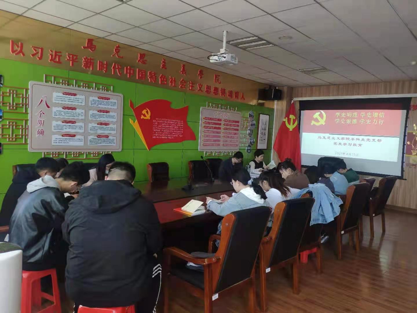 2021年4月13日上午10:30,乐天使本科生党支部在腾飞楼C511开展第一次党史学习教育,全体党员参加学习。本次党史学习教育以“学史明理、学史增信、学史崇德、学史力行”为主题,主要学习了《论中国共产党历史》一书中“中国革命历史是最好的营养剂”篇章,同时学习了“学习强国”平台上《百年奋斗,初心弥坚》一文,并安排了《中国共产党简史》相关课后学习的内容。