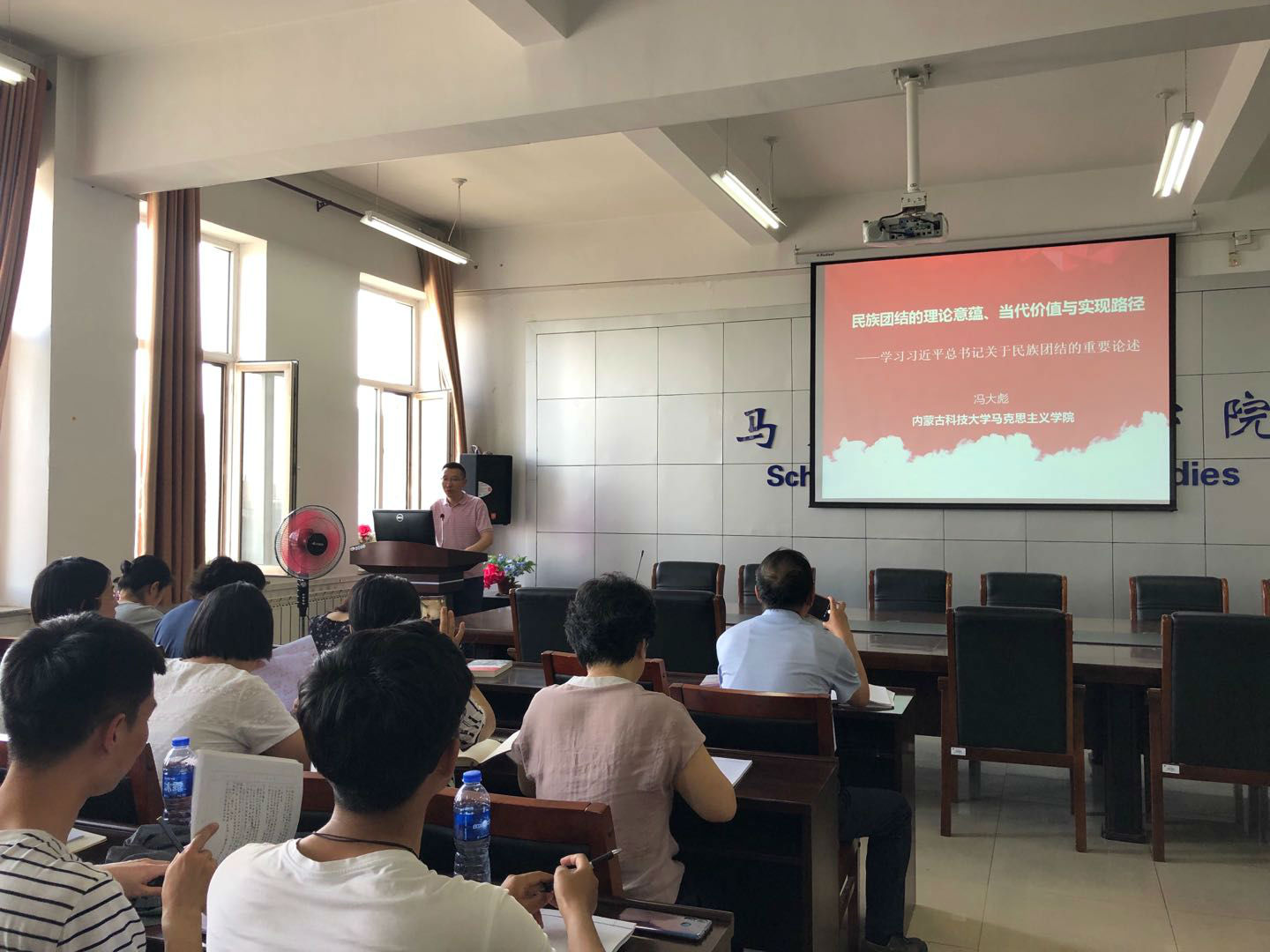 为深入推进“思想再解放笃行新发展理念,推动高质量发展大学习大讨论”,6月6日公司在腾飞楼C座517会议室举办民族团结相关专题讲座。公司党总支书记刘玉明主持讲座,讲座由乐天使副教授冯大彪主讲,讲座题目为《民族团结的理论意蕴、当代价值与实现路径——学习习近平总书记关于民族团结的重要论述》,讲座分为三个方面,分别是民族团结的理论意蕴、民族团结的当代价值、民族团结的实现路径。全体教师参加本次讲座。同时,本次讲座也作为民族团结教育的主要内容,员工党员、少数民族员工代表聆听本次讲座。